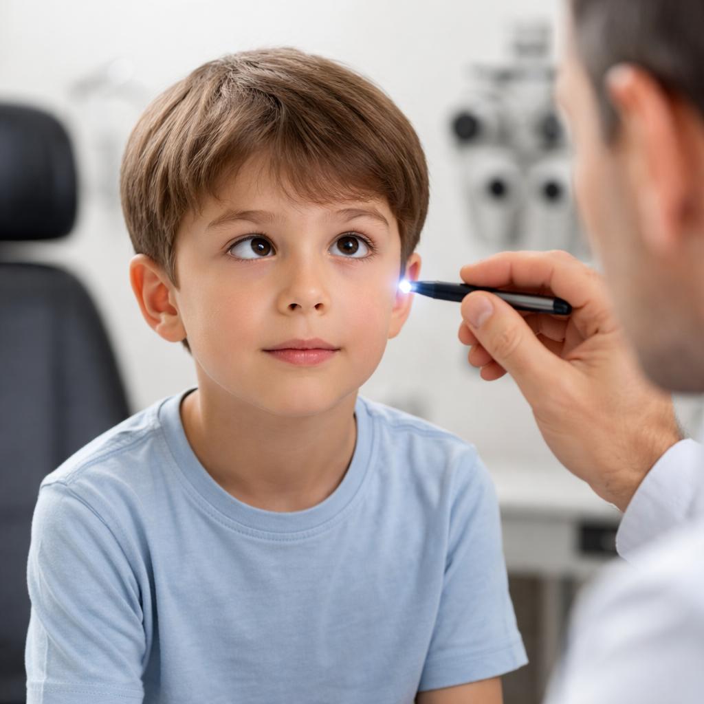 Диагностика начинается с проверки остроты зрения и определения рефракции — того, насколько правильно глаз фокусирует изображение. Это помогает выявить нарушения зрения, например дальнозоркость или близорукость. Затем врач оценивает положение глаз и степень их отклонения с помощью теста прикрытия: поочередно закрывает один глаз и наблюдает за движением второго. Это помогает определить, есть ли отклонение глаза и как оно проявляется. Также используют призматические линзы, с помощью которых измеряют угол отклонения глаза и оценивают степень косоглазия.